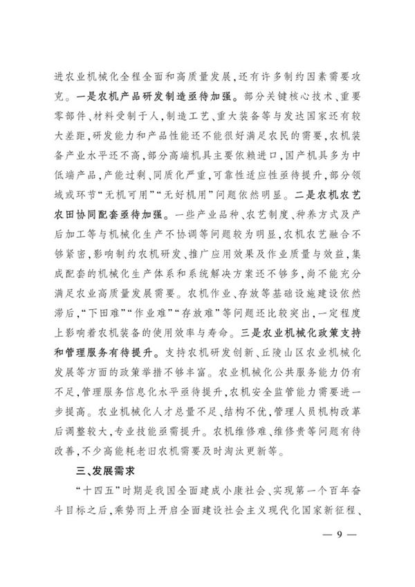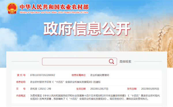 農(nóng)業(yè)農(nóng)村部關于印發(fā)《“十四五”全國農(nóng)業(yè)機械化發(fā)展規(guī)劃》的通知